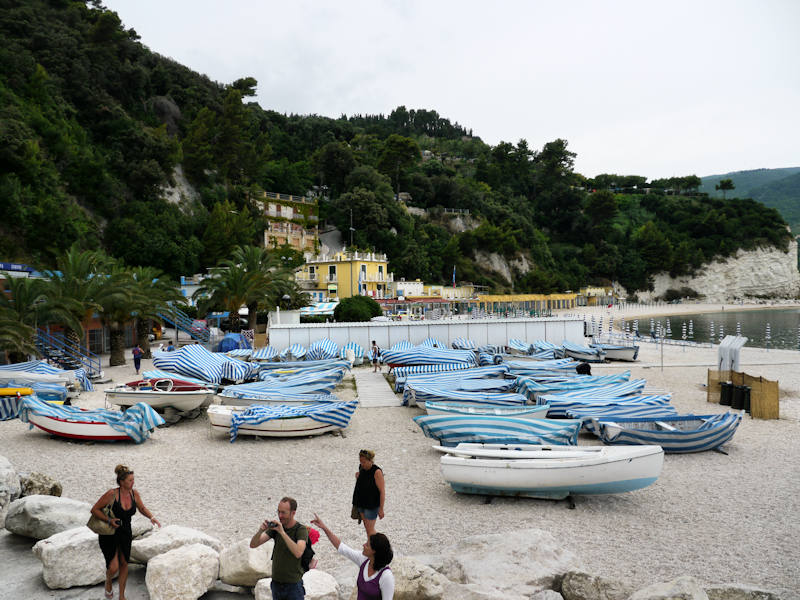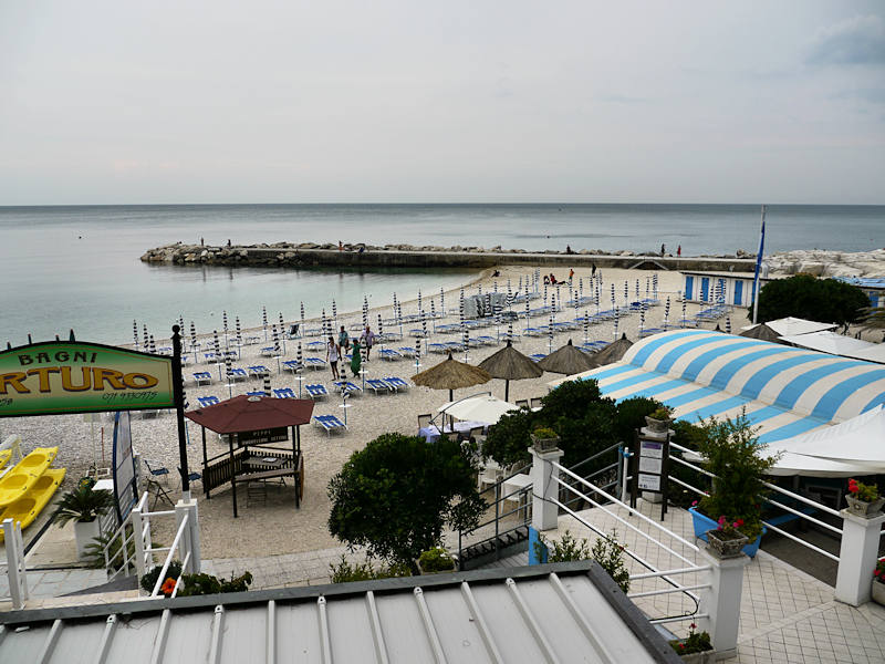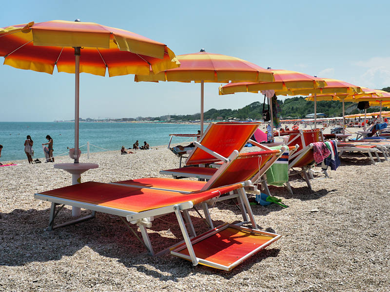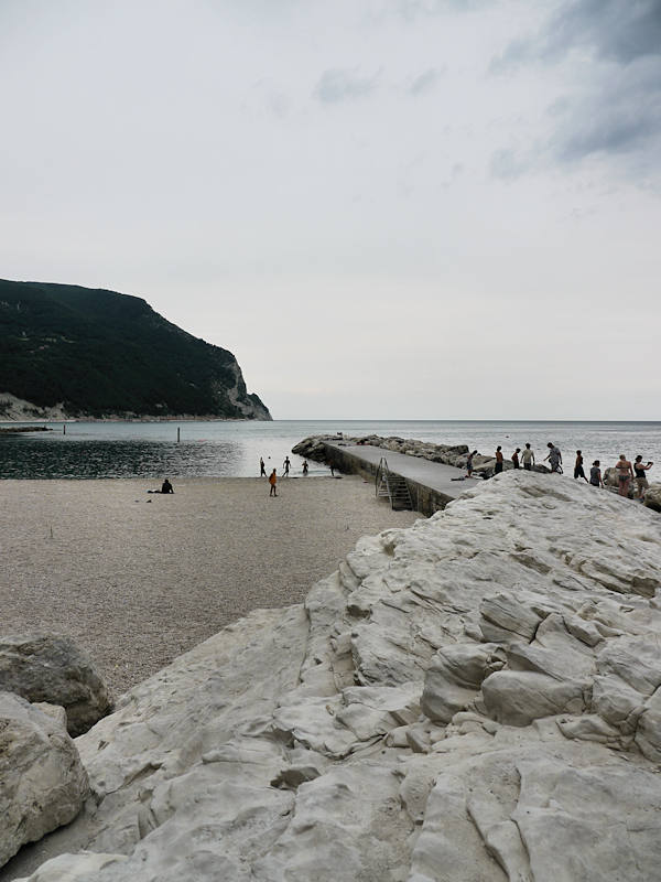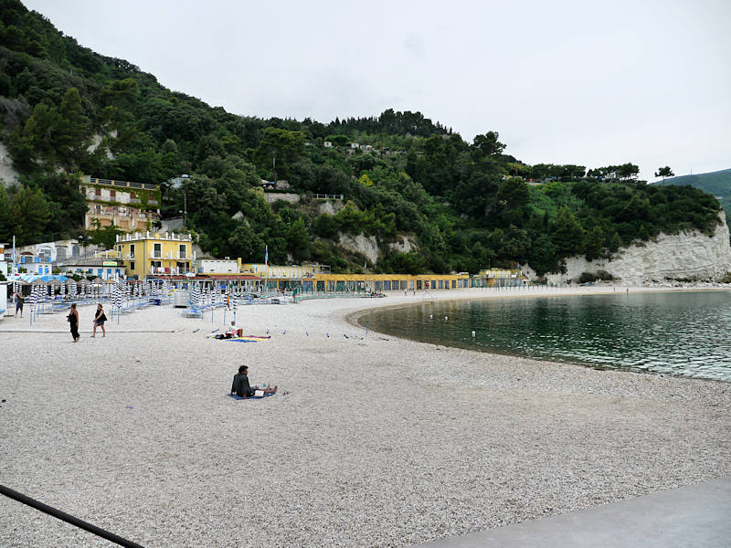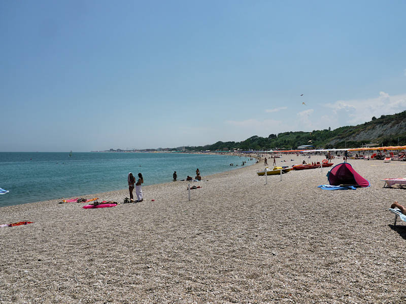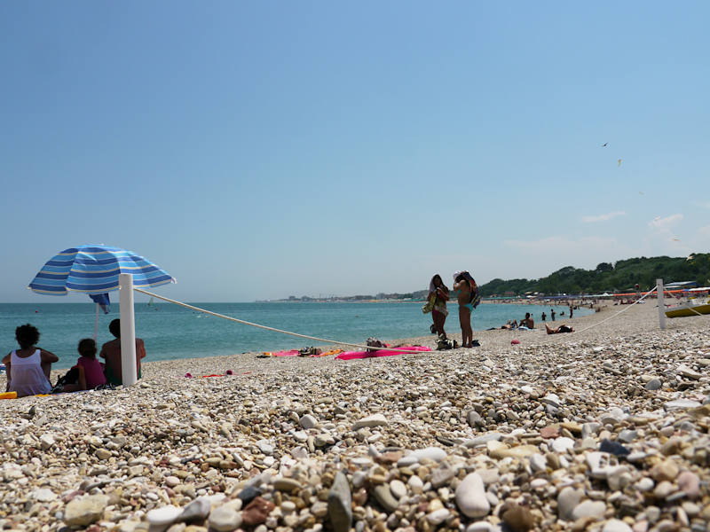 Côté plage, à Numana, il faut faire avec des graviers. Heureusement, ils sont petits et ne font pas mal aux pieds. On y passera une agréable demi-journée.