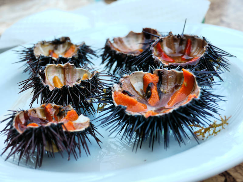 Enfin, les Pouilles c'est aussi un art de vivre (dehors !) et une cuisine sympathique que l'on déguste sur des terrasses de café accompagnée d'un vino bianco (ou rosso). Pour trois fois rien, on peut manger des pizzas ou des orecchiette - pâtes en forme de petites oreilles typiques des Pouilles - que l'on trouve partout. C'est bon et on ne s'en lasse pas ! Et puis, on peut goûter aux classiques de l'Italie comme les légumes grillés, la mozzarella (si possible di buffala), les salades de tomates mais aussi le poisson grillé, le poulpe, etc. Bref, la nourriture est bonne et pas très chère, on peut donc manger tous les jours au restaurant sans exploser son budget... Et s'il ne devait rester qu'un souvenir, ça serait celui des oursins dégustés dans les échoppes du Salento. À 30 centimes pièce, je ne pouvais plus m'arrêter ! Accompagnés d'une bière fraîche, c'est un vrai bonheur...